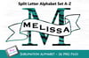 Full black and teal split letter A-Z monogram alphabet set with banners for sublimation or print.